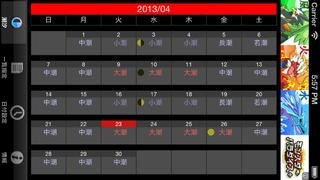 また横向きにすることでマンスリーの潮汐の概要を表示し、縦方向にフリックすることで月を変更します。