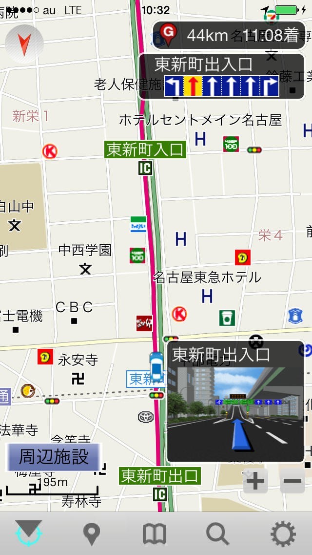 ・音声案内はもちろんの事、右左折時等には交差点拡大図、高速道路利用時はJCT分岐イラスト図で視覚的にしっかり案内