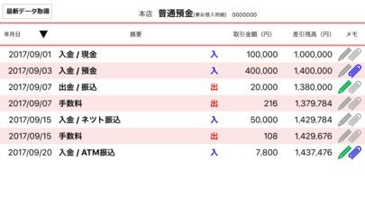 ・各入出金明細へのメモ機能