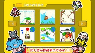 ・おえかきうたモード : えかきうたを見て自由に歌いながら絵が描けます。完成すると絵が動き出します!