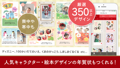 テンプレートからデザインを選び写真やスタンプでデコレーションした年賀状が作れる