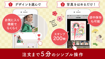 スマホで注文すると自宅にお届け!テンプレートやスタンプなどで年賀状の作成ができる