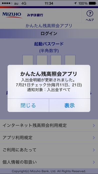 みずほ銀行 かんたん残高照会アプリのスクリーンショット