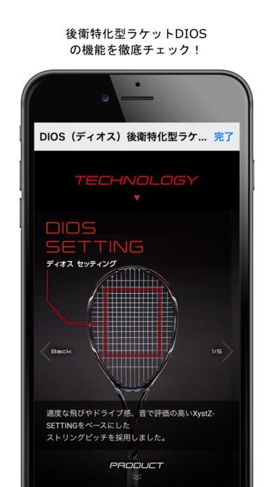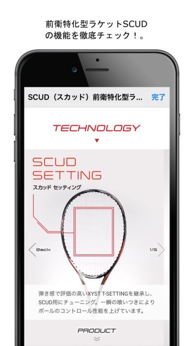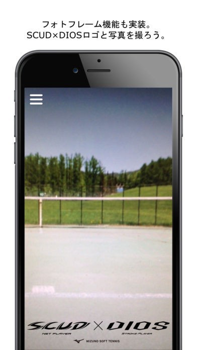 ミズノが開発した最新ソフトテニスラケットSCUD×DIOSの詳細情報や機能について詳しい内容が手に取るようにわかるアプリです。SCUD×DIOSのロゴの入った写真を撮ることもできます。