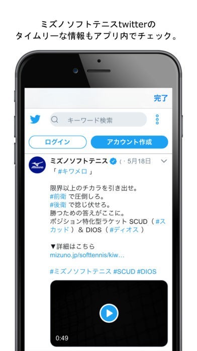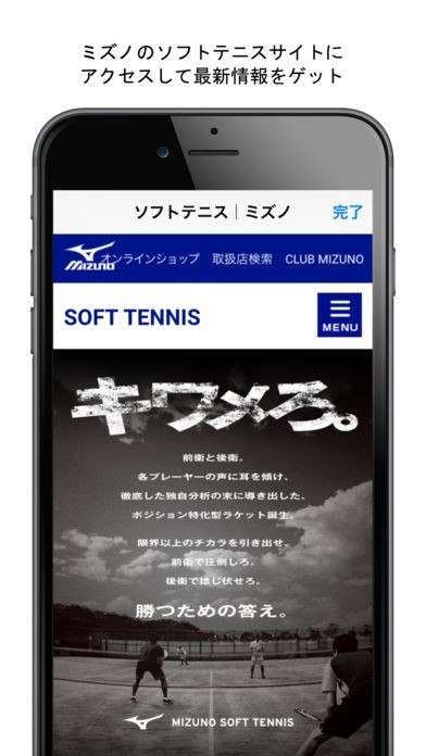 アプリから直接、ミズノソフトテニスのyoutureやtwitter、公式サイトへアクセスすることができます。ミズノソフトテニス関連の最新情報、タイムリーな情報を誰よりもいち早くゲットしたい方におススメです。