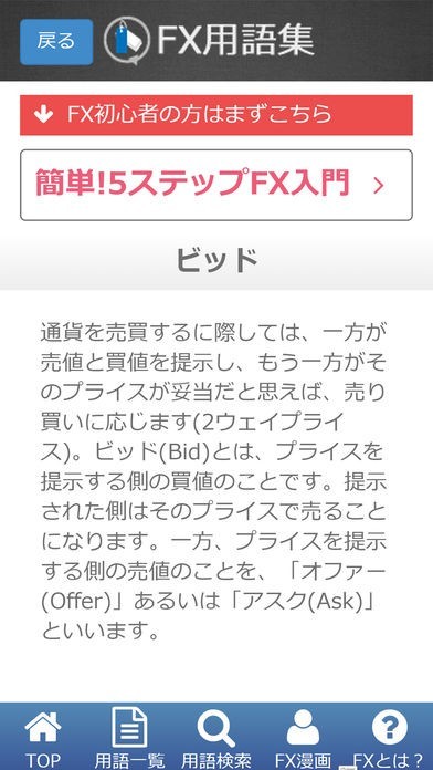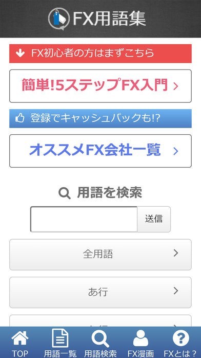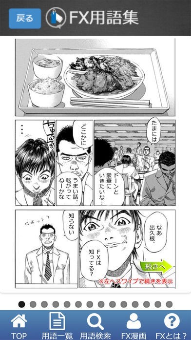 「FX用語集-説明漫画付き」は、FX用語を簡単に確認することが出来るアプリです。「FX用語集-説明漫画付き」は、FX用語を漫画によって説明してくれるので解りにくい用語も漫画によって理解しやすくなっています。それだけではなく、「FX用語集-説明漫画付き」には、用語検索が利用できるので、FX用語で解らないものがあった場合には用語検索を利用することで、解らなかったFX用語も簡単に用語集の中から探し出して意味を理解することが出来ます。