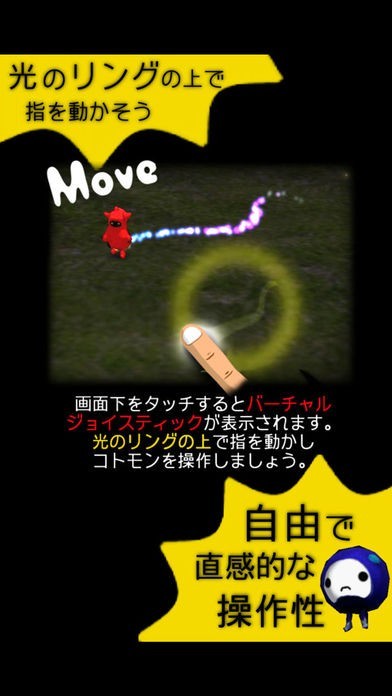 不思議キャラのコトモンと仲間達が自由に画面の中を動く姿に癒される