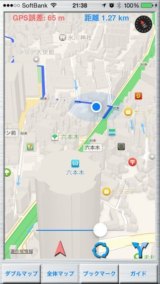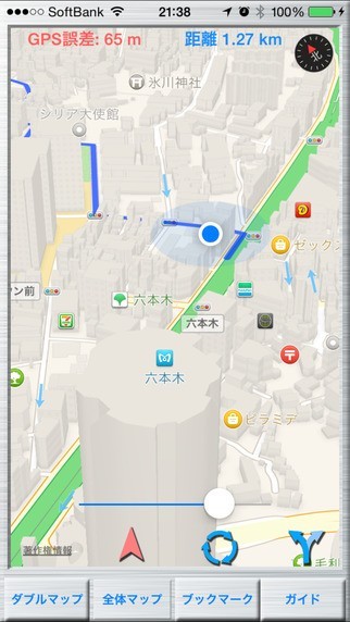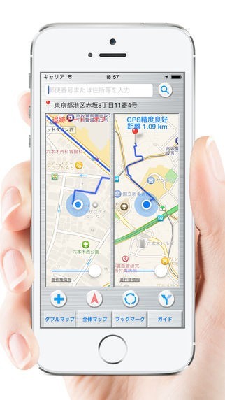 ピンチ操作をする事で上下二枚の地図を重ねての比較ができるから北海道を本州の地図に重ねてみたり世界の国の首都の大きさを自分の住んでいる場所と比較してみるなどといった楽しみ方ができます。