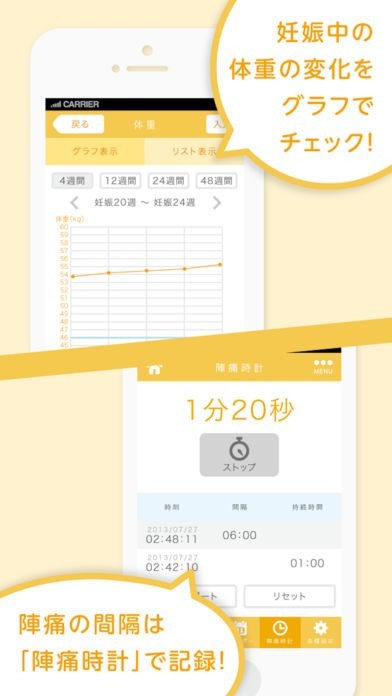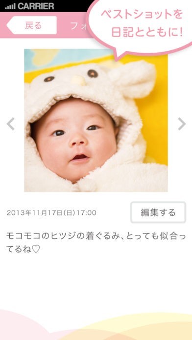 エコー写真などの画像付きで、妊娠日記をつけられます。