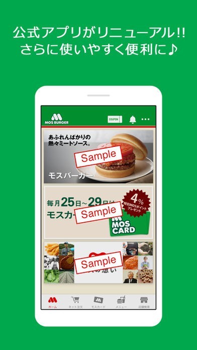 モスバーガーの期間限定キャンペーンやお得なキャンペーン情報などをスマートフォンでチェックすることができるようになっているので、ファン必見の公式アプリになります。