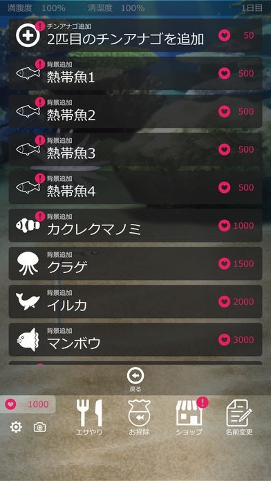 ハートを集めることでクマノミ、熱帯魚、クラゲ、イルカなど可愛らしい生き物を水槽内に追加することができます。ルーレットでハートを集めることができるので難しい操作はありません。