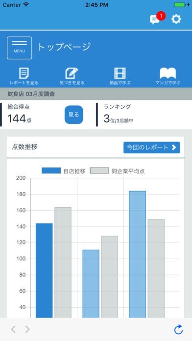 「学ぶ」のコーナーでは、顧客満足度を上げるための動画やテキストが満載。満足度が高い他のお店の情報も閲覧できるので、積極的に情報を集めたい店長さんにおすすめです。