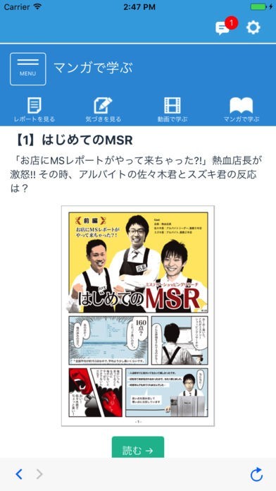 「MSナビ」をより効率的に使うための方法が掲載されているので、アプリをインストールしたらぜひチェックしてみてください。他にも業種別の最新トレンドなどが入っているので便利です。