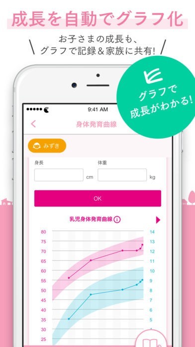 *・発育を自動でグラフ化するので、成長が一目瞭然・*