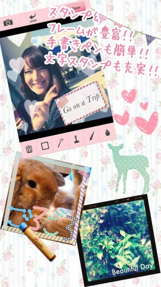 スタンプやフィルターの数も豊富。世界に一つしかない写真を作れます。