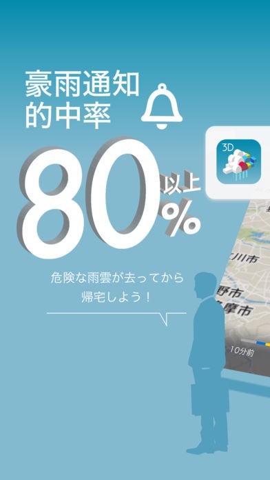 ゲリラ豪雨発生の危険を事前に察知した場合にはプッシュ通知でお知らせをしてくれる機能が搭載されているので、的中率80%以上の高確率の予測をプッシュ通知で教えてくれます。