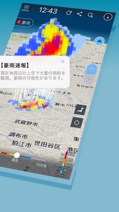 世界で初めてゲリラ豪雨を10分前に予測してくれる機能が搭載されているので、急なゲリラ豪雨が発生したときでも巻き込まれることなくスムーズに避難することができます。