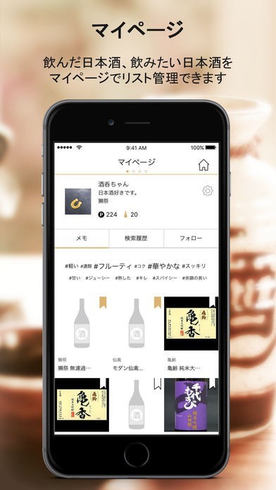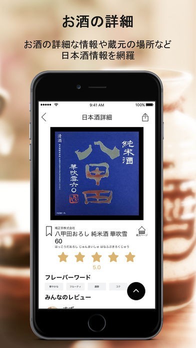 自分が飲んだお酒の味を記録したり、蔵元の情報や他のユーザーのレビューを知ることができるだけでなく、日本酒関連の情報がイロイロ入ってくるので、未知の美味しいお酒に出会うことができます。