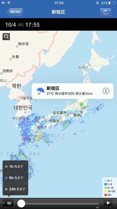 雨雲の動きを見たい時に便利