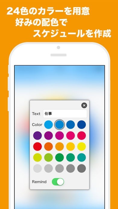カラフルで可愛いタスク用カラーも充実。カラーパレットから好みの色をタップで選択!