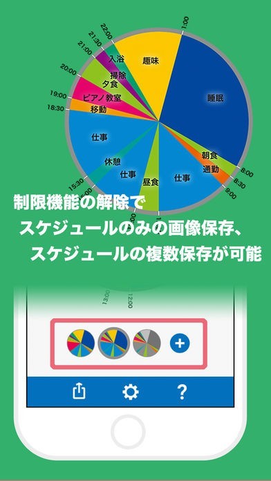 1日のスケジュールをグラフに管理する事が可能で、背景の色を調節出来るところが面白いです