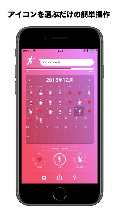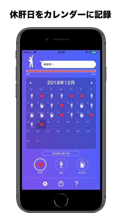 カレンダーにお酒を飲まない日が細かく設定出来るようになっています。さらに作成したカレンダーをSNSに共有する事が可能なので、禁酒を目指している方にも役立ちますね。