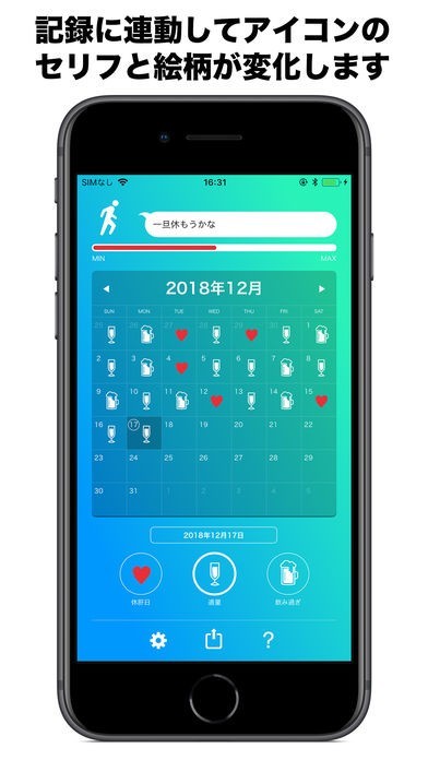 保存しているデータを他のデバイスに移行する事が可能なので、新しい端末に替えた時でも安心ですね。また飲酒に合わせてピクトグラムのアイコンが変動するのも面白い点です。