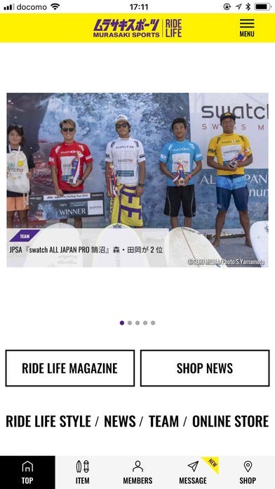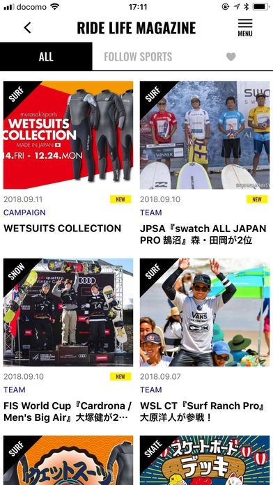RIDE LIFE MAGAZINEでチェックした優勝者のユニフォームをオンラインショップで探したり、連携しているSNSでフォローしたり、アプリ内外でスポーツを楽しめます。TEAMからムラサキスポーツに所属している選手の情報も見られるので、お気に入りの選手を探して応援もできます。スポーツと幅広く付き合えます。