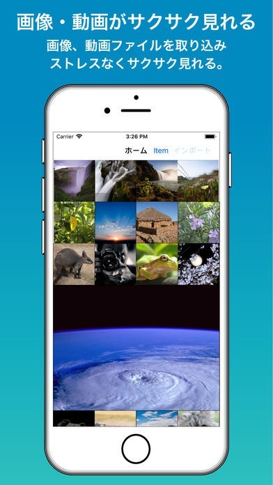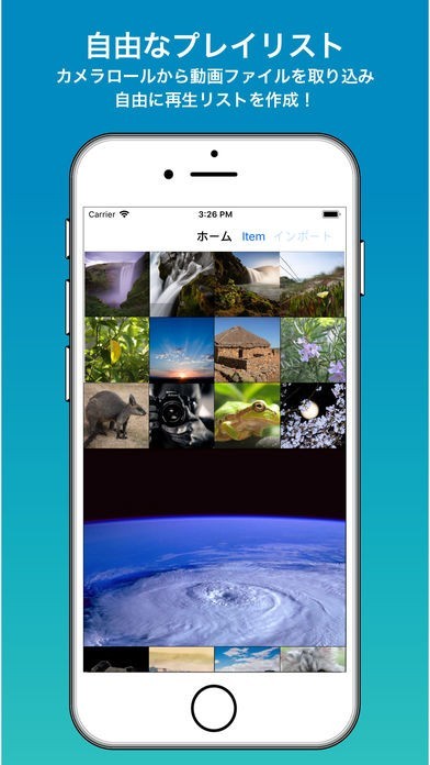 あらかじめカメラロールから動画や写真を取り込み、軽い動作でさくさく再生ができる!