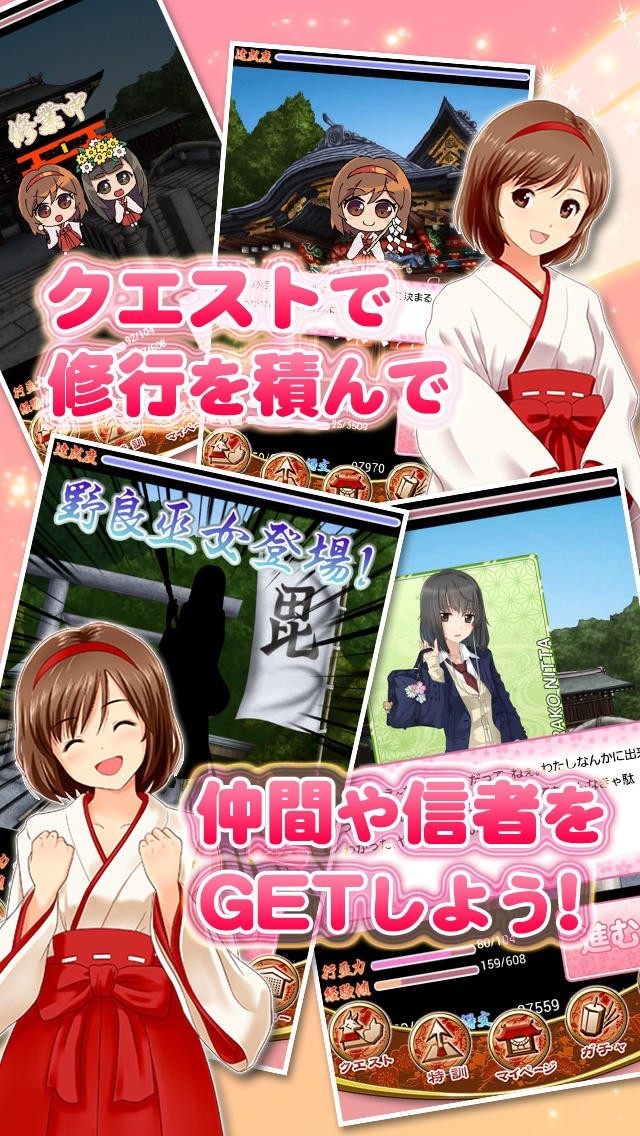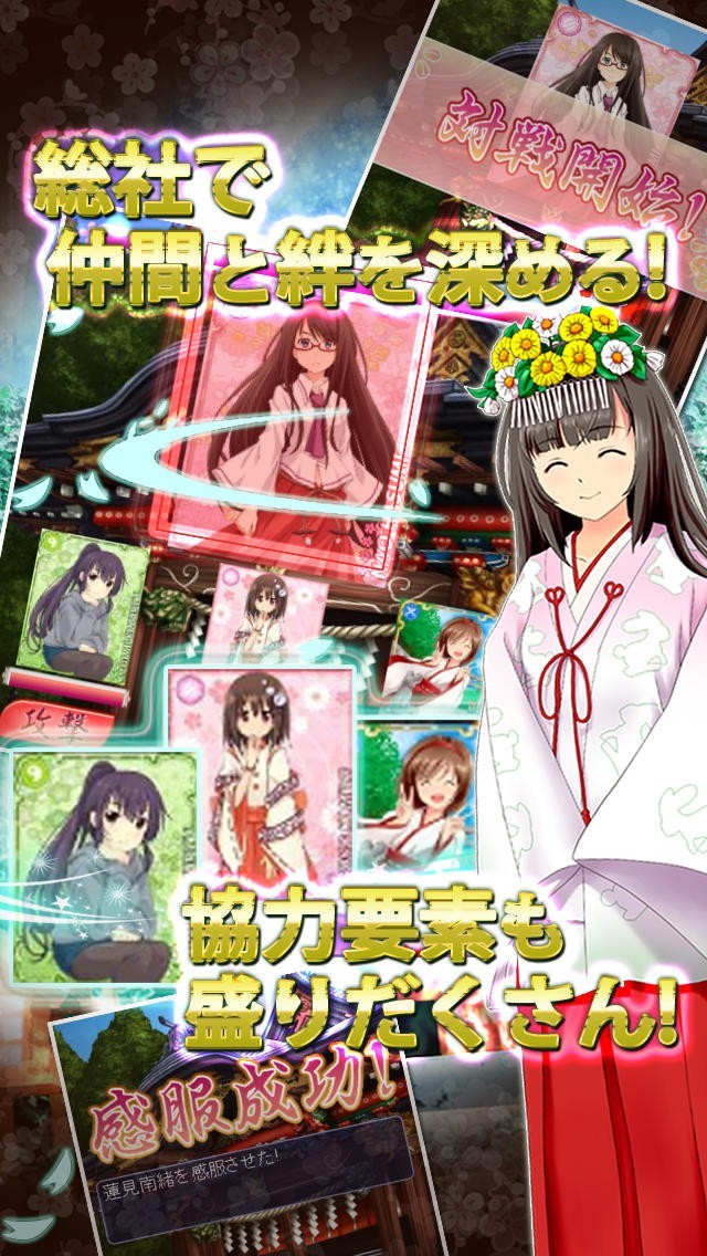 可愛い巫女を育て上げて日本一の神社を目指すソーシャルバトルゲームです。各クエストで巫女を成長させるだけでなく、仲間や信者を集めることもできます。さらに人気声優陣が担当したボイスがゲームに熱中させてくれます。