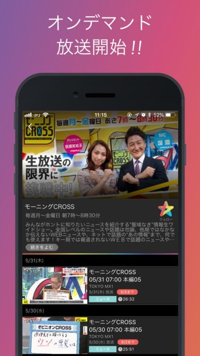TokyoMXの番組を全国どこにいても無料で見られるアプリ!