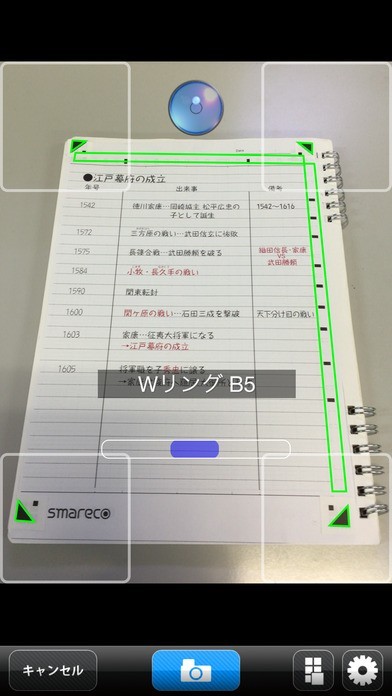 アプリからカメラを起動して撮影。傾きも自動で修正してくれる!