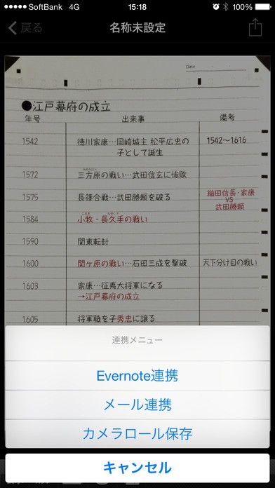 ついつい散らかりがちなノートは、「スマレコノート」の各種機能で整理してみてはいかがでしょうか。アプリからカメラを起動することで撮影機能を利用可能。あとは撮影するだけで、傾いたノート画像も自動的に正しい位置へと調整してくれます。色調も自動補正が行われるため、薄い文字もくっきりと読み取れるのが嬉しいポイント。また、手描き編集機能を使えばノート画像に手書きでメモを入れたり、図形を描けるようになっています。ちょっとしたメモ書きなどは手書きで挿入しておけば、後ほどノートを見返した際にも判りやすくなるでしょう。Evernoteとの連携機能も搭載。他デバイスとのデータ共有も手軽に行えます。