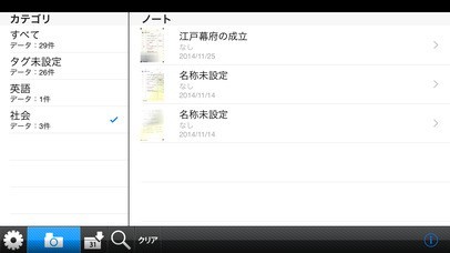 メモやノート、レポートなどのデータ化に役立つ「スマレコノート」は、ナカバヤシが発売しているノート専用のツールです。 まずはアプリからカメラを起動してノートを撮影してみましょう。 撮影後は自動的に傾きの修正やデータ化が行われる他、ブラインド領域が設定できるのが特徴です。 加工機能も搭載しており、タイトルなどが付けられるのも便利なポイント。タグ付けも同時に行っておけば、ノートを探し出したい時に役立つでしょう。 Evernoteとの連携機能も搭載。データの共有も簡単に行えます。