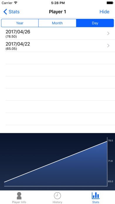過去のスコアを一覧表示する機能を搭載しています。見やすい表示によって試合結果について振り返ってみたり、自分の実力アップを目指してスコアを眺めたりと、多彩な使い方をすることができます。