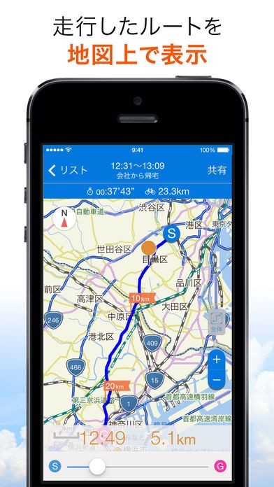 走行したルートを地図で表示できるので、サイクリングのログをとることができる