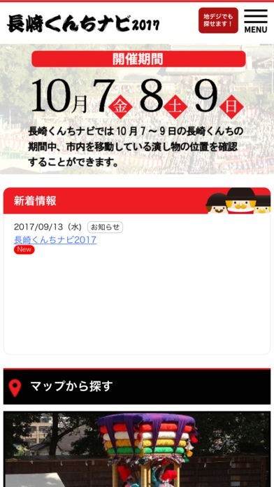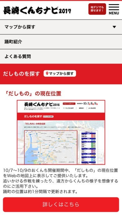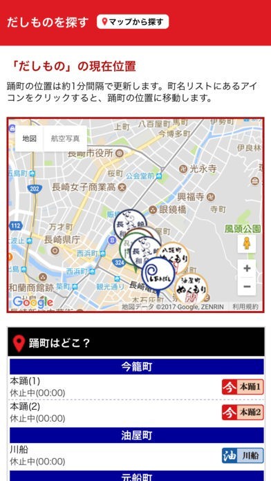 演し物の正確な位置情報が分かる長崎くんちアプリ