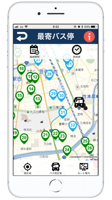 現在地に一番近い最寄りのバス停検索も簡単。見知らぬ土地でバスに乗ろう