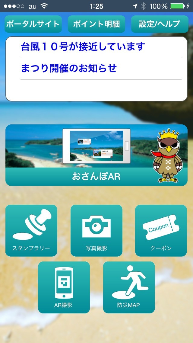 沖縄県石垣島への旅行を楽しくしてくれる機能が満載となっていて、石垣島各所にある観光スポットへの案内機能や、ARコードを利用したポイントラリー機能などを利用することができます。