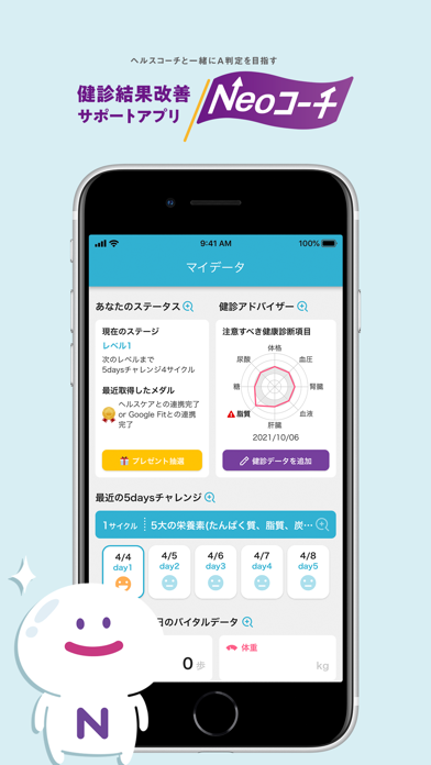 Neoコーチは、あなたの健康診断 結果の改善をサポートするアプリです。