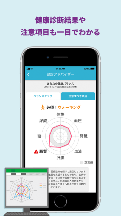 健康診断の結果を入力するだけでリスクや改善点が一目でわかる!