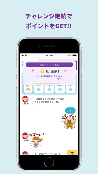 簡単な健康改善の取り組みを毎日報告するだけでOK!