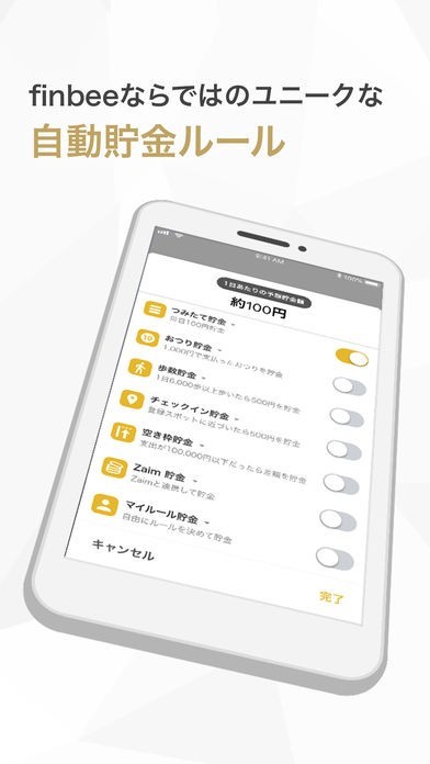 銀行口座と連動した自動貯金アプリ「貯金アプリfinbee」