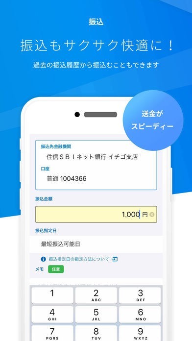 住信SBIネット銀行の提供するさまざまなサービスが簡単に利用できる公式アプリ!