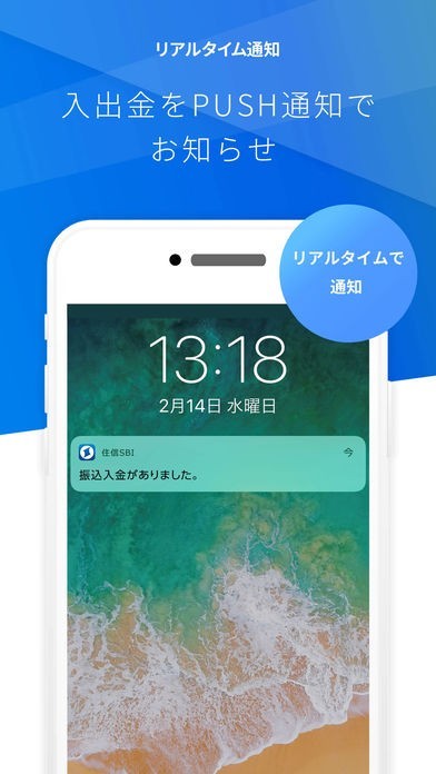 銀行からの重要なお知らせはもちろん、振込受付や入金などをリアルタイムで通知するので取引内容をしっかり把握できて安心です。通知のオン/オフは設定画面から変更可能です。