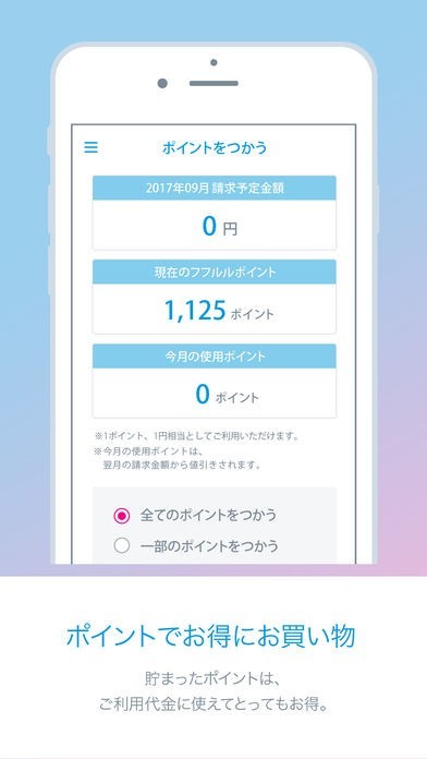 利用した金額に応じてポイントが貯まっていき、そのポイントを使ってお買い物をすることもできるようになっています。利用するほど、さらにお得なお買い物ができて便利です。