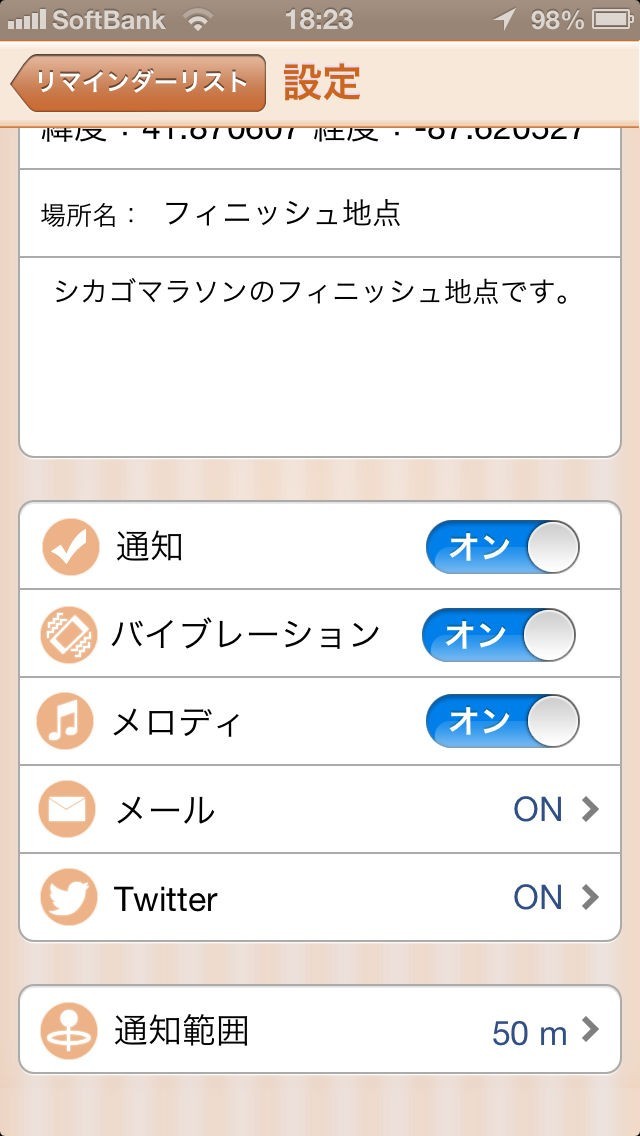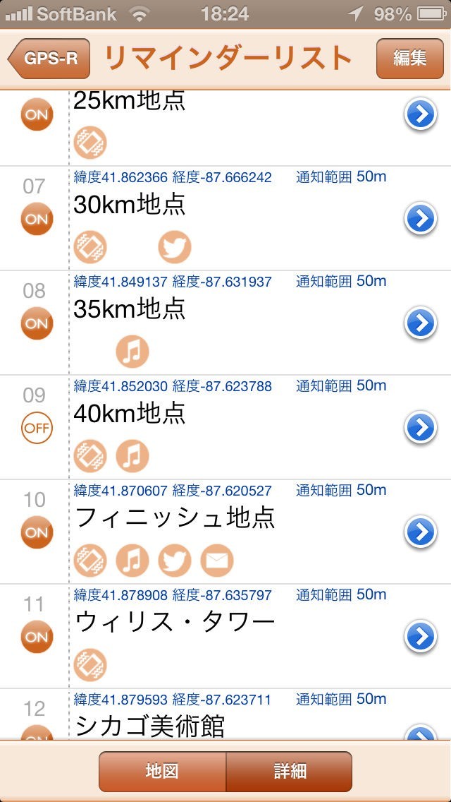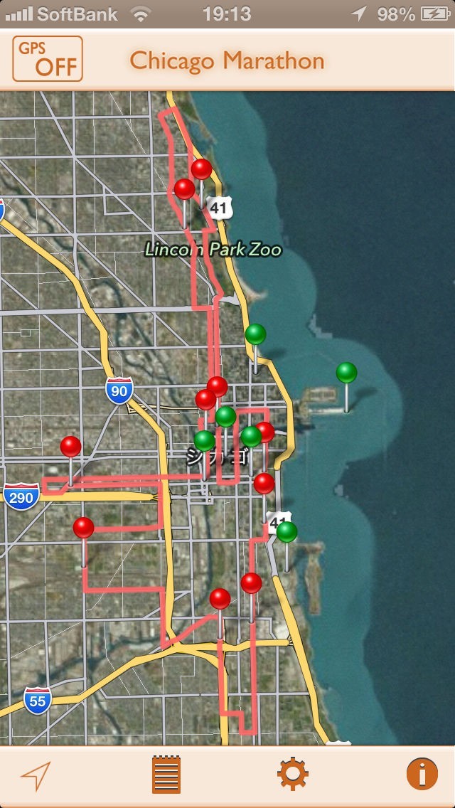 App Storeより引用GPS-R for シカゴマラソンは場所で作動するリマインダーアプリGPS-Rをシカゴマラソン向けに特化させたアプリです。