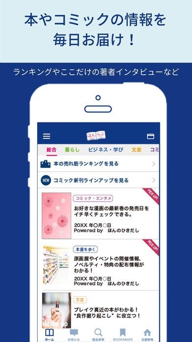 毎日アプリに本や漫画の情報が届きます。最新の本や漫画をチェックすることができます。人気ランキングや著者のインタビューも掲載されているので、充実した情報をゲットできます。