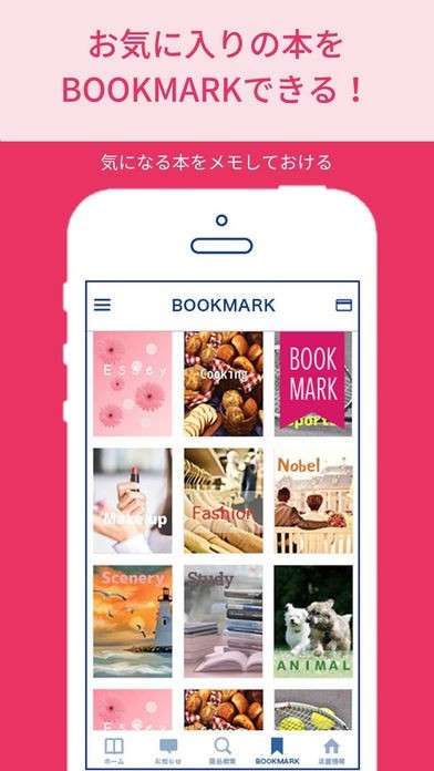 アプリにはブックマーク機能が付いています。気になる本やお気に入りの本を登録しておきましょう。購入したくなったら、いつでもブックマーク一覧から取り寄せることができます。