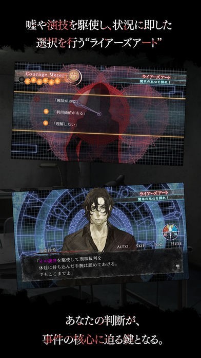 本作は一般的な選択肢の表示だけでなく、登場キャラクターのセリフの一部が選択可能になる「ライアーズアート」システムを導入しています。さまざまな分岐を見たい場合、選択できるセリフを選択しない、という行動を試してみるのもおすすめです。